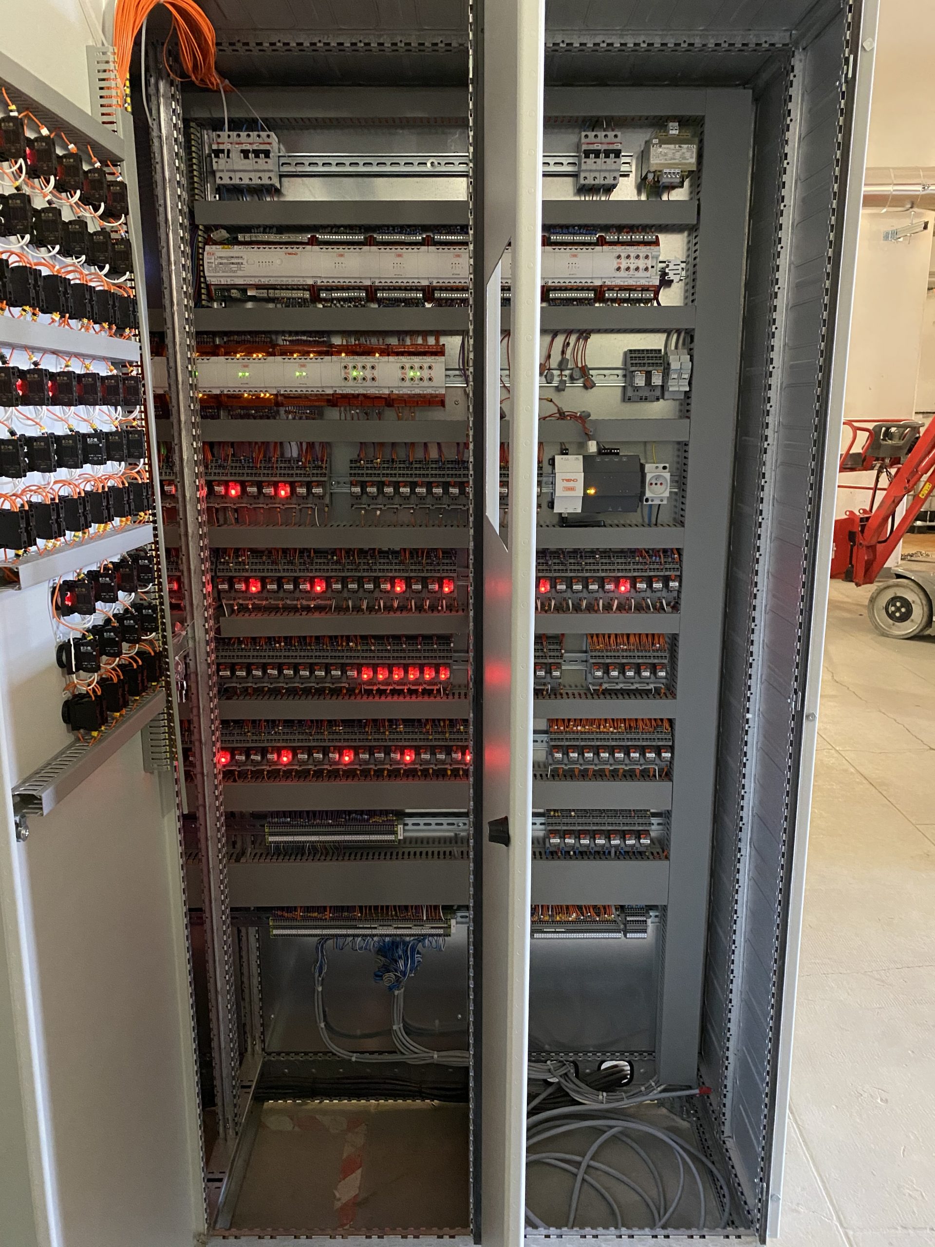 Câblage en cours d’une armoire de régulation d’une installation de ventilation. Livraison d’ici quelques jours pour respecter les délais souhaités de notre client